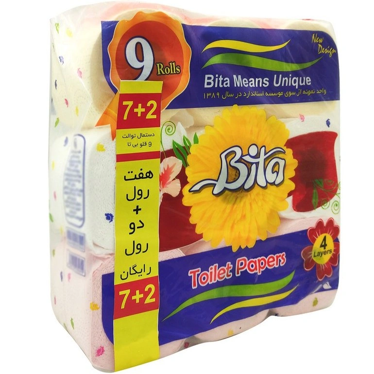 دستمال کاغذی توالت 9 قلو چهار لایه رنگی بیتا
