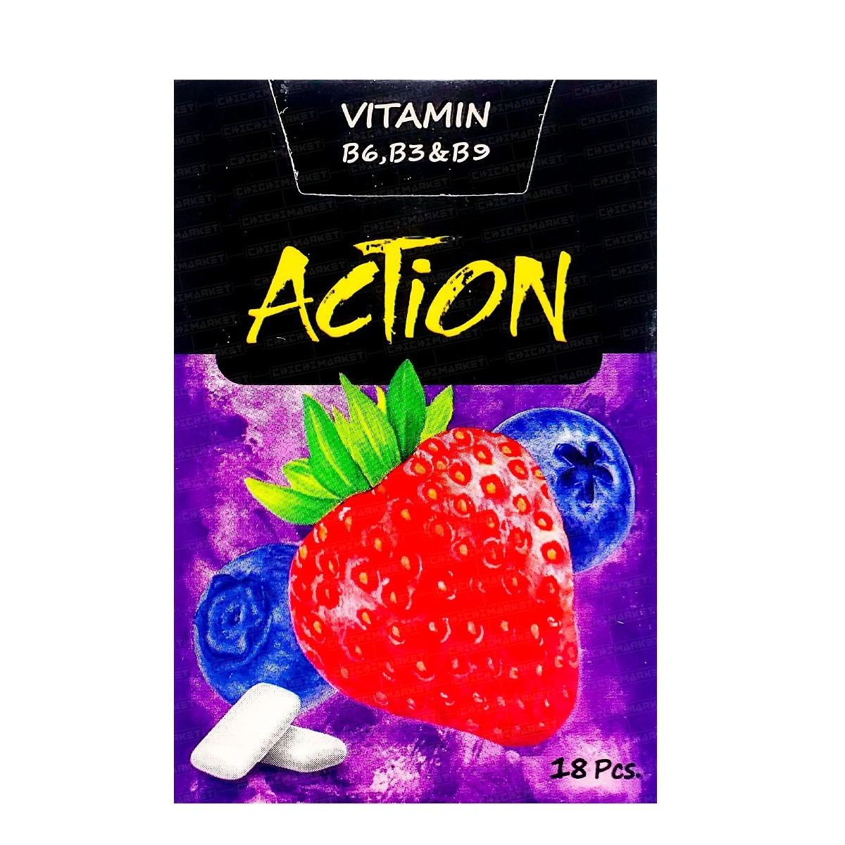 آدامس دراژه بدون شکر - سری ویتامینه - توت فرنگی بلوبری اکشن