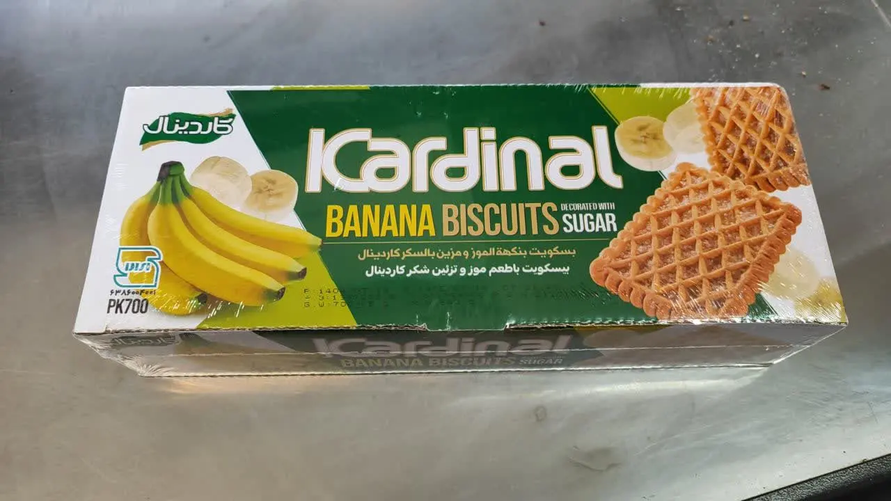 بیسکویت پذیرایی با طعم موز و تزئین شکر 700 گرمی کاردینال