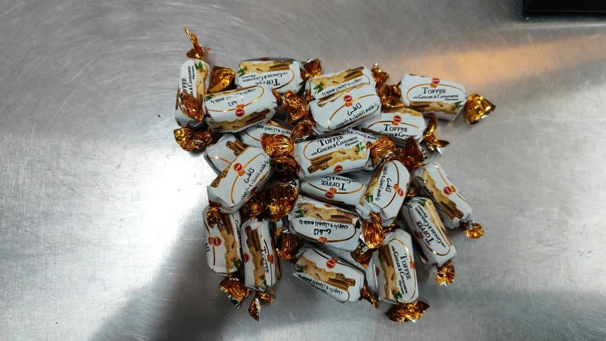 تافی کره ای دورنگ دارچین و زنجبیل فله ای مینو