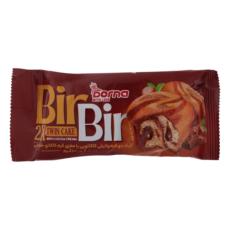 کیک دو قلو دولایه وانیلی کاکائویی با مغزی کرم کاکائو - فندقی 60 گرم درنا