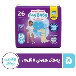 پوشک شورتی کانال دار سایز 5 بزرگ اقتصادی 26 عددی مای بیبی